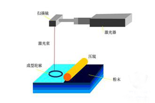 SLS打印机工作面由粉末缸和成型缸组成,粉末缸活塞(送粉活塞)上升,由铺粉辊将粉末在成型缸活塞(工作活塞)上均匀铺上一层,计算机根据原型的切片模型控制激光束的二维扫描轨迹,有选择地烧结固体粉末材料以形成零件的一个层面。粉末完成一层后,工作活塞下降一个层厚,铺粉系统铺上新粉。控制激光束再扫描烧结新层。如此循环往复,层层叠加,直到三维零件成型。最后将未烧结的粉末回收到粉末缸,并取出成型件。